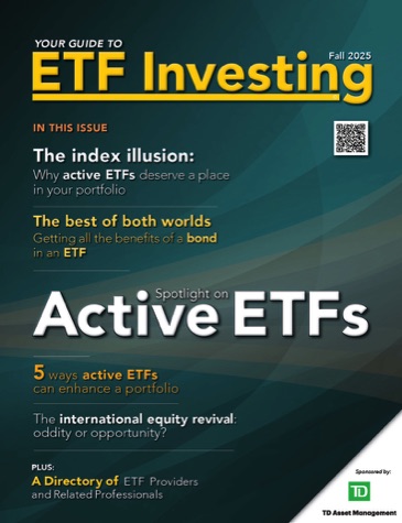 Your Guide to ETF Investing is a glossy magazine that is distributed in the Globe and Mail, National Post and Toronto Star across the GTA (~60,000 copies) and in Investment Executive across Canada (~26,000 copies). A French version is also available with distribution in Quebec.